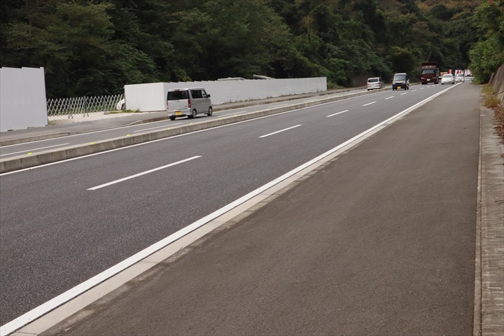 標識らしきものも見当たらず、さてどっちへ行ったものか。大楠山はなんとなく方向的にこの道路の向こうのような気もしたが、渡る場所も見当たらない。で、カンで道路に出て右に進む。まぁいい。山に沿って行けばまたどっかで入れるんじゃないか。