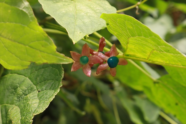 なかなか印象的だ。これは花じゃなくてクサギの実だ。まわりのピンクと真ん中のなんとも言えない綺麗な青がいい。クサギのこの青は染め物にもするそうだ。なるほど綺麗そうだな、こんどやろうか。