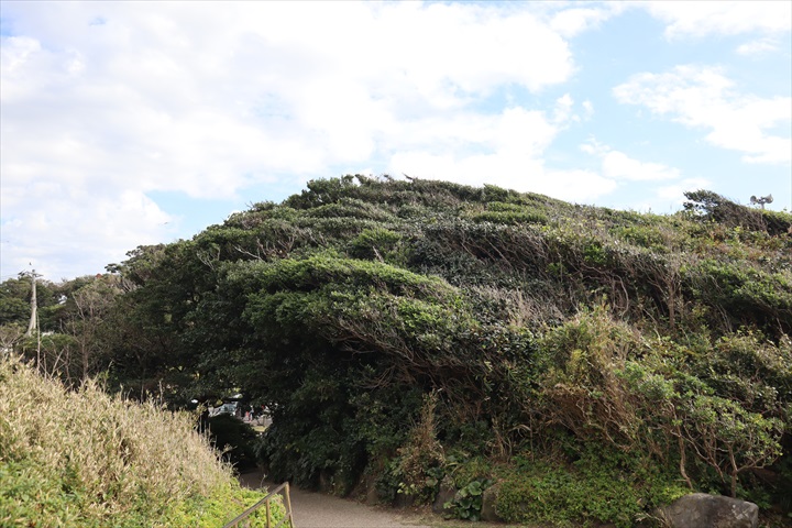 海からの風でみんな同じほうに傾いて生えていて面白い。