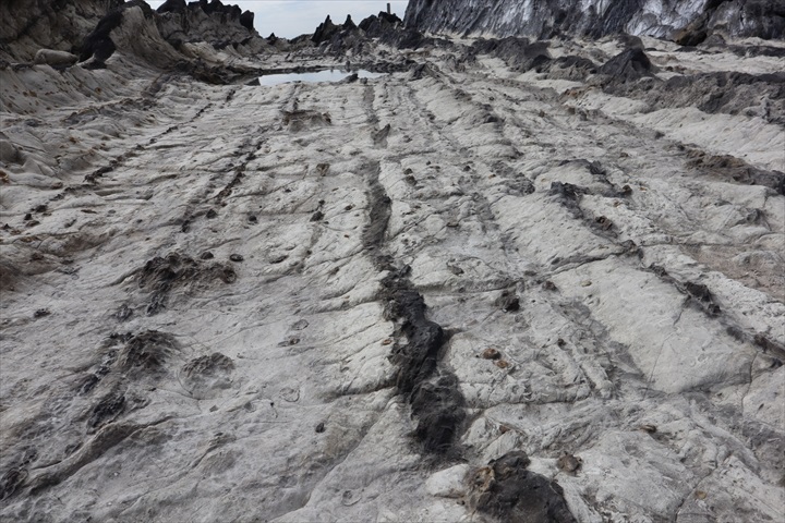 そして海岸の眺め。地質学的なことはとんと疎いけど、この風景がなかなかの観察ポイントなのだろうなという事は感じる。