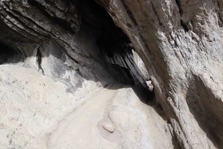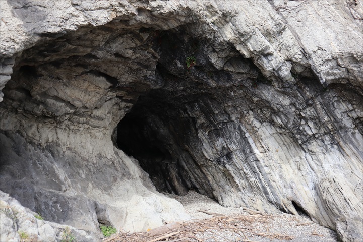 荒崎海岸には波に浸食されてできた洞窟がある。中で交差した穴となっていて十文字洞というらしい。