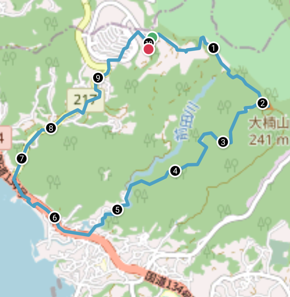 今日のコース。約10Km。海からの戻りが街歩きのえんえん登りでなかなかえぐい。