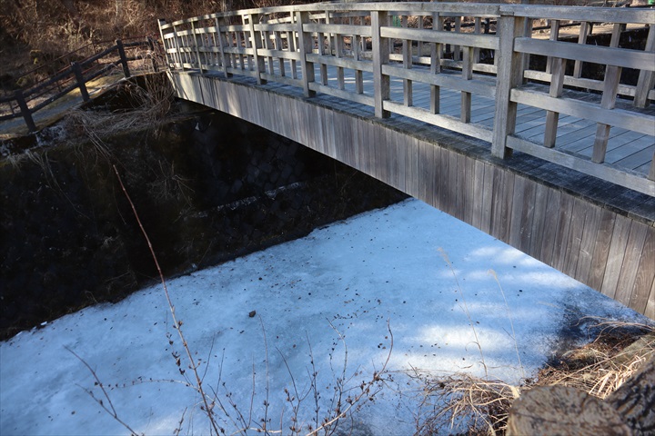 ちなみに駐車場横の橋の下は。。。がっちがちに凍ってた。