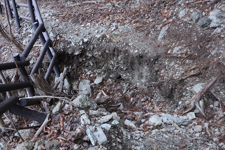 しかし、それもつかの間傷ついた箇所を越えると、もう整備された道は終わりしっかり山道に。