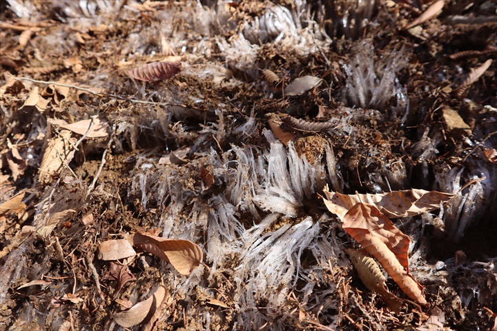 足元には霜柱。最近住んでる当たりじゃ見なくなったなぁ。