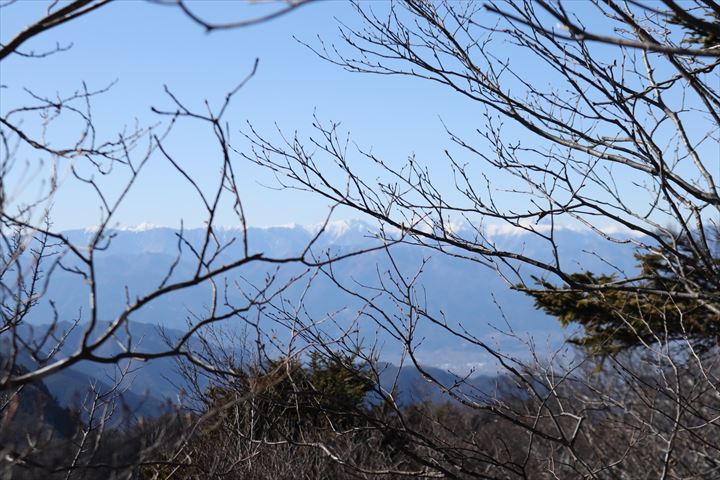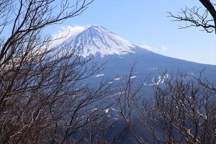 頂上でこの日唯一のハイカーと会った。ご夫婦か。この先の鬼ヶ岳まで足を延ばしたがずうっと地面がかっちかっちに凍ってつるつるだったと教えてもらった。
