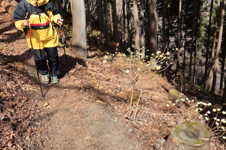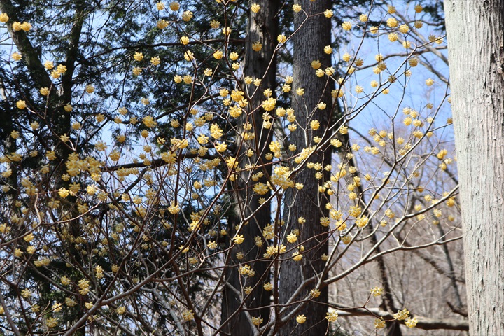 やがて杉林の間に間にミツマタの黄色が見えてきます。