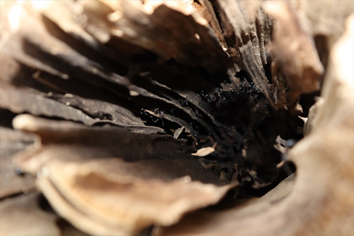 この切り株の穴の中にはびっくり、大群の蟻がびっしり生息していた!
