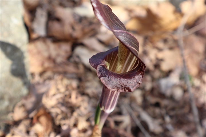 マムシグサかな。マムシというかコブラのような鎌首をもちあげ猛々しい。
