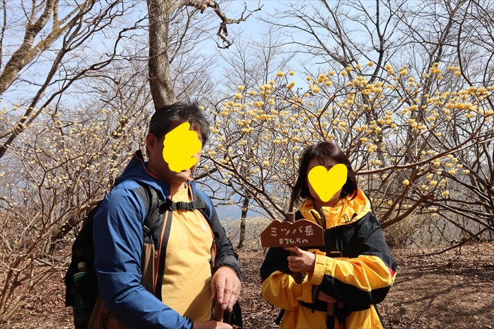 おっと忘れてた、山頂山頂。どうだ、ミツマタコーデだ。